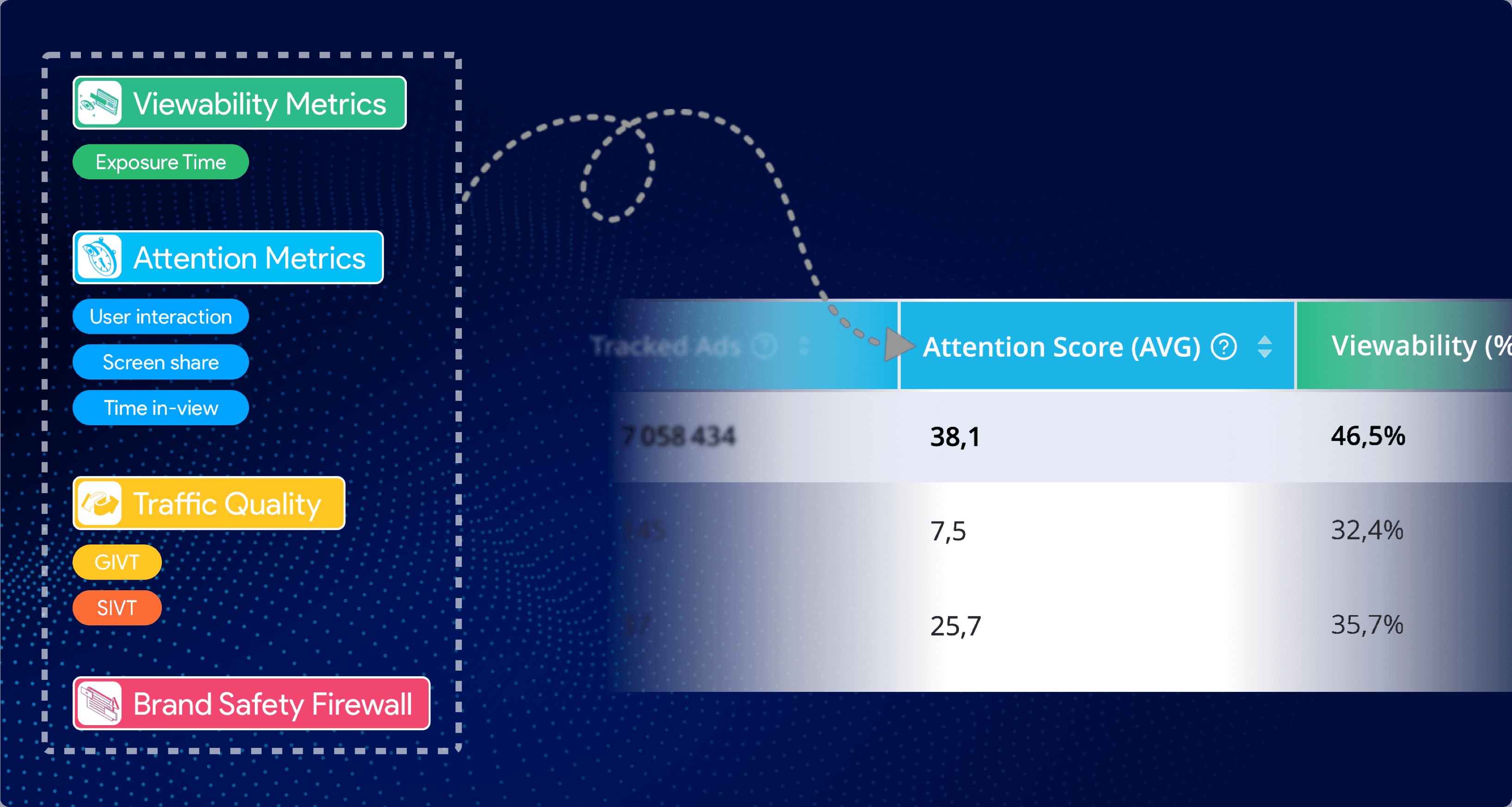 That’s why we’ve created Adloox Attention Score, leveraging our extensive 14-year history of research and development in advertising measurement, along with the numerous telemetry parameters already integrated into our technological suite.